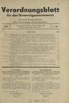 | Verordnungsblatt für das Generalgouvernement = Dziennik Rozporządzeń dla Generalnego Gubernatorstwa. 1942, Nr. 25 (27. März) | Nov 26, 2014 |