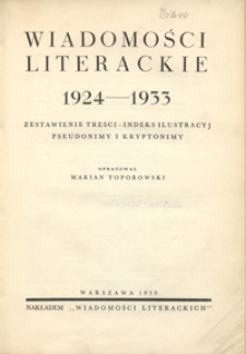| Wiadomości Literackie 1924-1933 : zestawienie treści - indeks ilustracyj, pseudonimy i kryptonimy | Nov 18, 2022 |