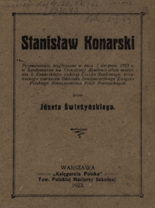 | Stanisław Konarski : przemówienie wygłoszone w dn. 3 sierpnia 1923 r. w Sandomierzu [...] - Świeżyński, Józef (1868-1948) | 17 lut 2018 |