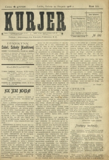 Tytuł poprzedni : Kurjer Lubelski wydawany przez W. Chodźko, T. Łappa w drukarni J. Pietrzykowskiego : R. 1, nr 1 (czwartek, 04 stycznia 1906)-R. 1, nr 15 (piątek, 19 stycznia 1906) ; kolejnymi redaktorami "Kurjera" byli : od nr 58 (1906) Bolesław Sekutowicz, od nr 201 (1906) Bronisław Tołwiński, od R. 2, nr 127 (1907) Stanisław Korczak, od R. 4, nr 137 (1909) Feliks Jankowski i od nr 144 (1911) Witold Giełżyński. ; tytuł następny : Codzienny Kurjer Lubelski / [red. i wyd. Mieczysław Biernacki] wydawany w l. 1913-1914. ; W nr 190 egzemplarza ze zbiorów BG UMCS brak s. 3-4