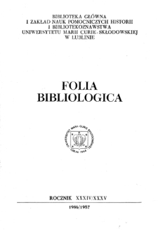 Rocznik ; w latach 1998-2003 nie ukazywał się ; od 2004 r. wyd. przez Bibliotekę Główną i Instytut Bibliotekoznawstwa i Informacji Naukowej UMCS ; tyt. poprzedni: Biuletyn Biblioteki UMCS ; Błędne oznaczenie numeracji: R. 36/37
