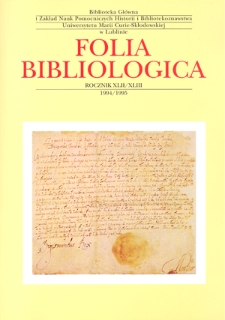 Tom zawiera materiały konferencji jubileuszowej z okazji 50-lecia Biblioteki Głównej UMCS, Lublin, 23-24 listopada 1995