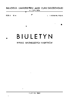 Tyt. poprz.: Wykaz Ważniejszych Nabytków ; Tyt. nast.: Biuletyn Biblioteki UMCS