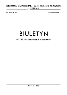 Tyt. poprz.: Wykaz Ważniejszych Nabytków ; Tyt. nast.: Biuletyn Biblioteki UMCS