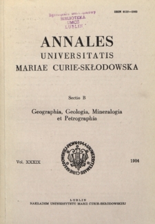Tytuł: Annales Universitatis Mariae Curie-Skłodowska. Sectio B, Geographia, Geologia, Mineralogia et Petrographia. Vol. 39 (1984)