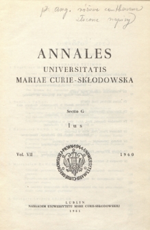 Annales Universitatis Mariae Curie-Skłodowska, Sectio G, Ius Vol. 7 1960)