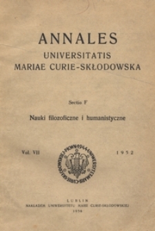 Annales Universitatis Mariae Curie-Skłodowska. Sectio F, Nauki Humanistyczne ; Roczniki Uniwersytetu Marii Curie-Skłodowskiej. Dział F, Nauki Filozoficzne i Humanistyczne