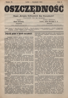 Tytuł: Oszczędność: organ Związku Galicyjskich Kas Oszczędności: wychodzi raz na miesiąc R. 9, nr 12 (grudzień 1913)