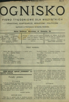 Title: Ognisko : pismo tygodniowe dla wszystkich oświatowe, gospodarcze, społeczne i polityczne. R. 2, Nr 40 (2 października 1913)
