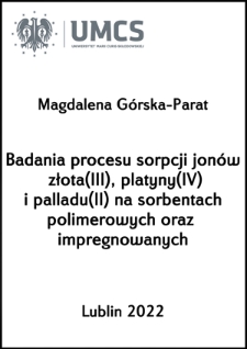 Tytuł: Badania procesu sorpcji jonów złota(III), platyny(IV) i palladu(II) na sorbentach polimerowych oraz impregnowanych