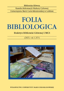 Folia Bibliologica : biuletyn Biblioteki Głównej UMCS