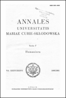 Annales Universitatis Mariae Curie-Skłodowska. Sectio F, Nauki Humanistyczne