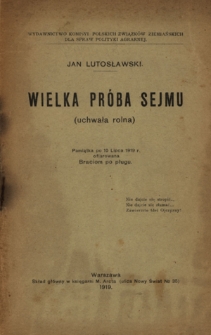 | Lutosławski, Jan (1875-1950), 1919, Uchwała rolna Sejmu : jej znaczenie i krytyka | 25 cze 2015 |