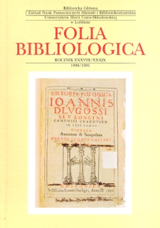 Title: Folia Bibliologica : biuletyn Biblioteki Głównej UMCS. R. 38/39 (1990/1991)