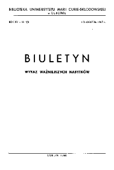 Title: Biuletyn Biblioteki Uniwersytetu Marii Curie-Skłodowskiej w Lublinie. R. 15 (1967) nr 1-2