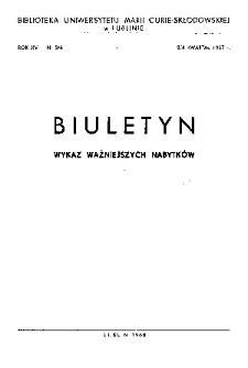 Tyt. poprz.: Wykaz Ważniejszych Nabytków ; Tyt. nast.: Biuletyn Biblioteki UMCS