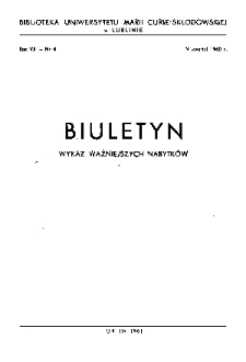 Tyt. poprz.: Wykaz Ważniejszych Nabytków ; Tyt. nast.: Biuletyn Biblioteki UMCS