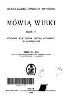 | Mówią wieki. Cz. 4 : Czwarty rok nauki języka polskiego w gimnazjach - Balicki, Juliusz (1890-1963) | 10 wrz 2021 |