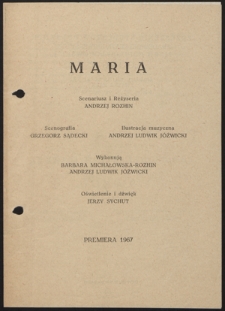 druk czarno-biały ; Scenariusz do przedstawienia teatru GONG2 "Maria", którego premiera miała miejsce 1 października 1967 roku.