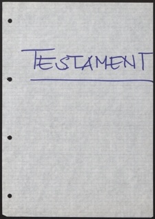maszynopis ; rękopis ; Scenariusz do przedstawienia teatru GONG2 "Testament" wg. François Villona. Premiera przedstawienia miała miejsce 14 lipca 1968 roku.