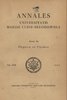 Roczniki Uniwersytetu Marii Curie-Skłodowskiej. Dział AA, Fizyka i Chemia ; Annales Universitatis Mariae Curie-Skłodowska. Sectio AA, Chemia