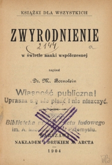 | Zwyrodnienie w świetle nauki współczesnej - Bornsztajn, Maurycy (1874-1952) | 10 wrz 2020 |
