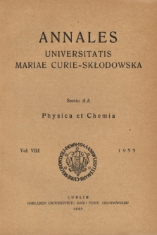 Roczniki Uniwersytetu Marii Curie-Skłodowskiej. Dział AA, Fizyka i Chemia ; Annales Universitatis Mariae Curie-Skłodowska. Sectio AA, Chemia