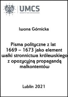 | Pisma polityczne z lat 1669 – 1673 jako element walki stronnictwa królewskiego z opozycyjną propagandą malkontentów | Sep 8, 2021 |