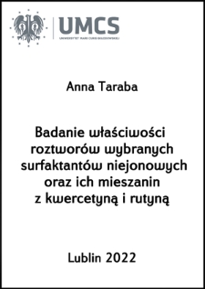 | Badanie właściwości roztworów wybranych surfaktantó niejonowych oraz ich mieszanin z kwercetyną i rutyną | Dec 7, 2022 |