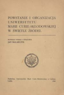 | Powstanie i organizacja Uniwersytetu Marii Curie-Skłodowskiej w świetle źródeł | 2 lis 2022 |