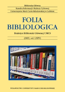 tyt. poprzedni: Biuletyn Biblioteki UMCS ; czasopismo ukazuje się w wersji elektronicznej