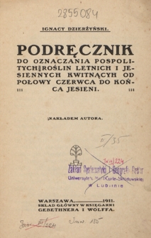 Tytuł: Podręcznik do oznaczania pospolitych roślin letnich i jesiennych kwitnących od połowy czerwca do końca jesieni