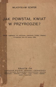 Title: Jak powstał kwiat w przyrodzie? : odczyt wygłoszony na publicznem posiedzeniu Polskiej Akademji Umiejętności dnia 16 czerwca 1926