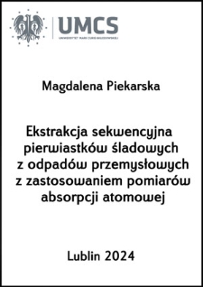 | Ekstrakcja sekwencyjna pierwiastków śladowych z odpadów przemysłowych z zastosowaniem pomiarów absorpcji atomowej | 6 gru 2024 |
