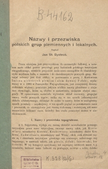 | Nazwy i przezwiska polskich grup plemiennych i lokalnych - Bystroń, Jan Stanisław (1892-1964) | 24 mar 2023 |