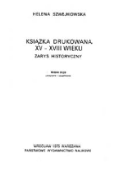 Tytuł: Książka drukowana XV-XVIII wieku : zarys historyczny