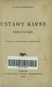 | Ustawy karne dodatkowe - Makarewicz, Juliusz (1872-1955) | Feb 18, 2023 |